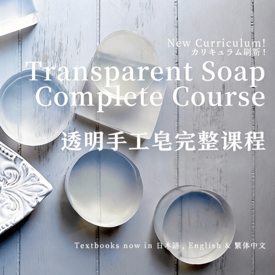 「极致透明皂——透明皂完全攻略」2025年9月课程全新升级。 本课程为讲师专用研修课程,系统讲授从油脂制作透明皂、使用市售皂基制作透明皂,到利用脂肪酸钠制作透明皂的全套技法。 课程将学习5款材质、性质各异的透明皂配方,以及渐变透明皂的制作方法。 教材支持英文、中文双语版本。