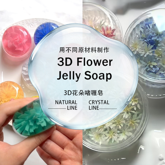 3D花朵果冻皂——让手工皂绽放如花它不仅是皂,更是一件可以触摸的艺术品。3D花朵果冻皂,在手作皂的世界里独树一帜。晶莹剔透的皂体如凝脂般Q弹柔软,轻轻按压,那份独特的回弹触感令人爱不释手。而最令人惊叹的,是盛开在皂中的立体花朵——每一片花瓣都由你亲手塑造,层层叠叠,栩栩如生。从制作透明皂基开始,到调色、构图、花朵造型,你将完整掌握这门小众而惊艳的手作技艺。无论是精致的小花布局,还是富有层次的空间构成,整块皂体都是你的创作画布。当你亲手完成第一块作品,那份成就感无可替代。而用它洁面洗手时,那如水般澄澈的